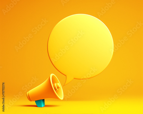 Megaphone and speech bubble background illustration on yellow background. speakerphone 3d rendering. Loudspeaker, announcement, attention, marketing, important speech, promotion, advertising