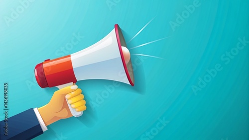 Megaphone Announcement: Flat Design Illustration - Light Blue Background