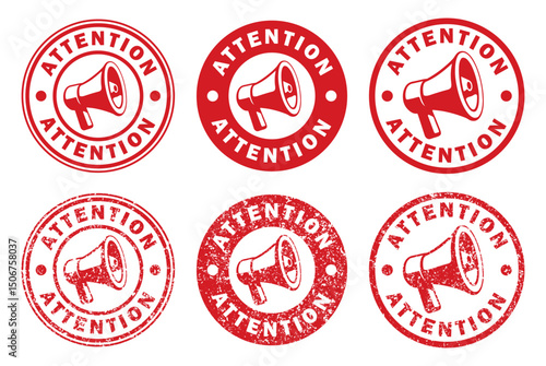 Megaphone news attention round Grunge stamp icon shape symbol. Voice sound speech logo silhouette sign. Loudspeaker amplifier. Vector illustration image. Isolated on white background.