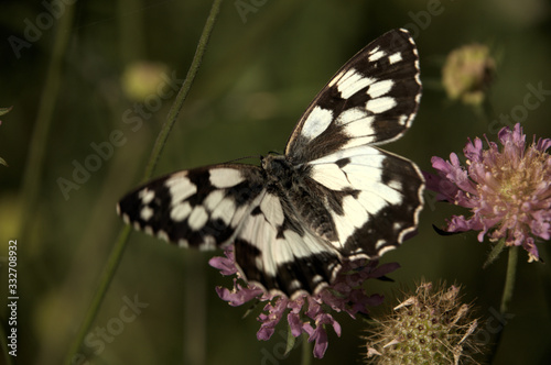 Melenargia galathea; marbled white butterfly in Tuscan meadow