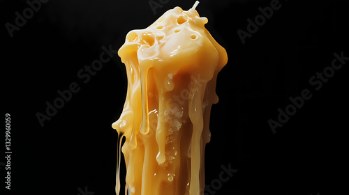 Melted candle with dripping wax against black background. Molten Light. Illustration