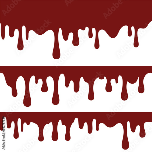 Melted chocolate dripping on white background, Vector Illustration of Liquid Chocolate Cream