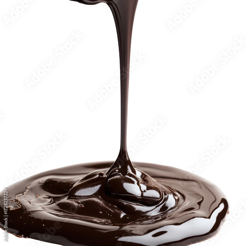 Melted Dark Chocolate Flowing Delicious Dessert Treat isolated on a white background