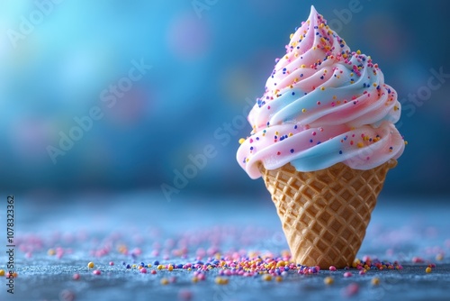 Melting ice cream with colorful swirls and sprinkles captured in close-up.