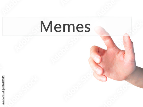 Memes - Hand pressing a button on blurred background concept on visual screen.