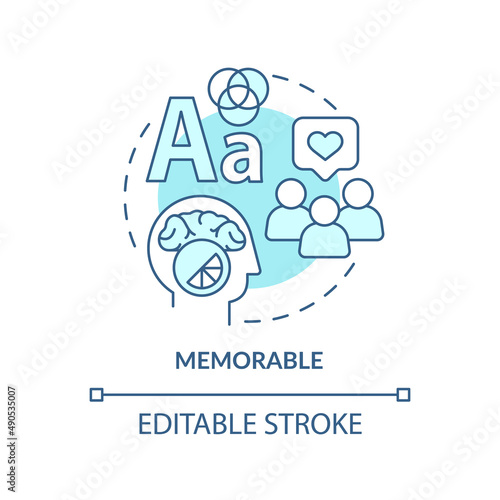 Memorable turquoise concept icon. Designer work. Good logo design characteristics abstract idea thin line illustration. Isolated outline drawing. Editable stroke. Arial, Myriad Pro-Bold fonts used