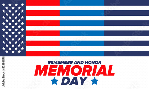 Memorial Day in United States. Remember and Honor. Federal holiday for remember and honor persons who have died while serving in the United States Armed Forces. Celebrated in May. Vector poster