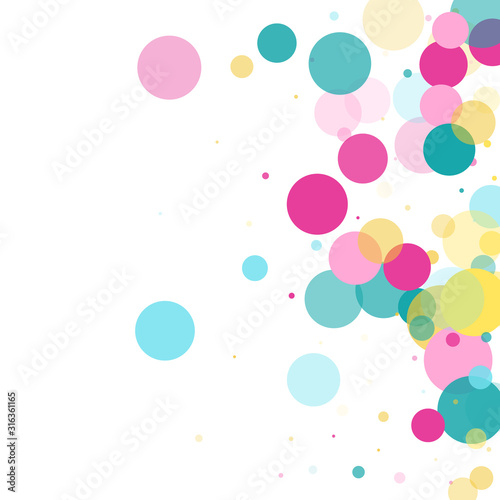 Memphis round confetti festive background in cyan blue, pink and yellow. Childish pattern vector.