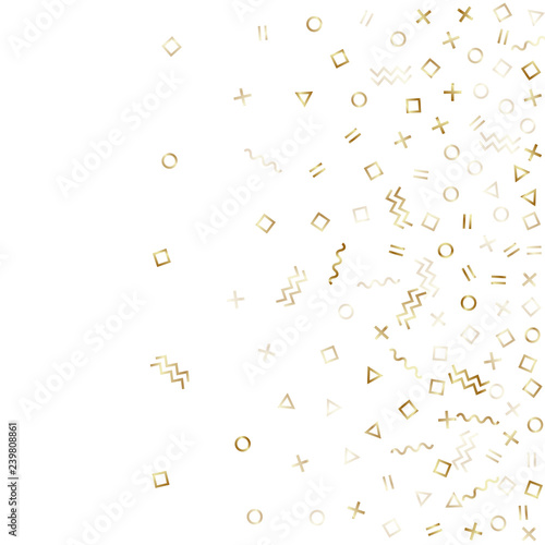 Memphis style geometric confetti vector background of triangle circle square shapes, chevron wavy lines.