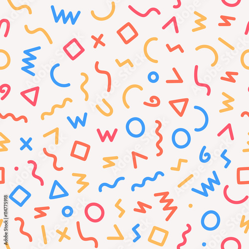Memphis style seamless pattern. Abstract vector illustration with geometric elements, shapes.