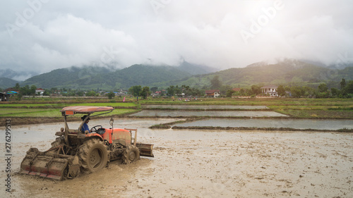 Men drive the farm to prepare agriculture.