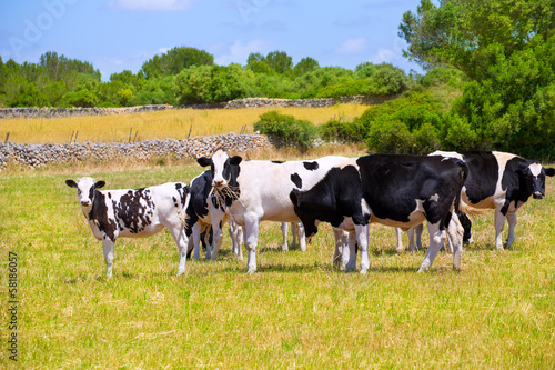 Menorca Friesian cow cattle grazing in green meadow