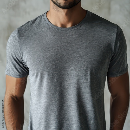 Men's athletic t-shirt urban setting fashion photography casual vibe close-up view cotton-polyester blend