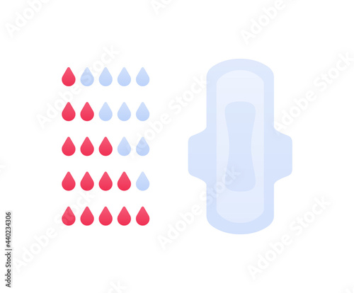Menstruation sanitary pad. Vector flat illustration. Absorption infographic with blood drop symbol isolated on white background. Design element.