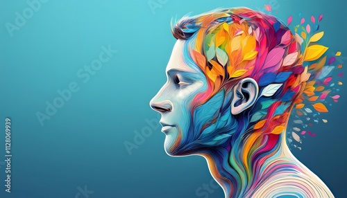 Mental health and depression concepts: Mental health, serene human silhouette in vibrant colors.