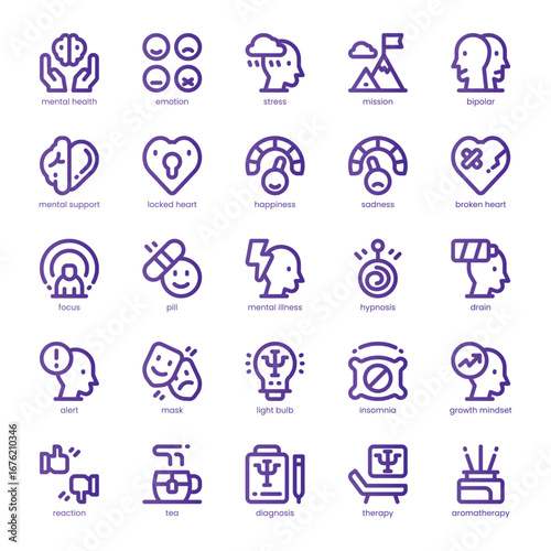 Mental Health Support Icon pack for your website, mobile, presentation, and logo design. Mental Health Support Icon line basic color design. Vector graphics illustration and editable stroke.