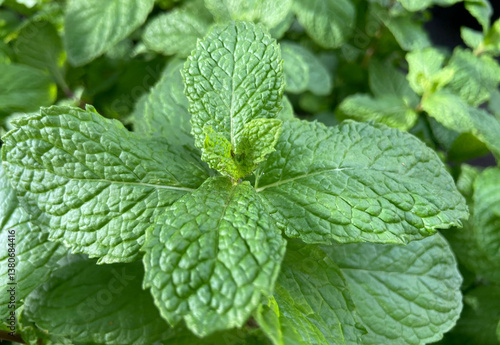 Mentha rotundifolia green leaves as a background. Garden mint.Herbal medicine,medicinal plants and herbs concept.Selective focus.