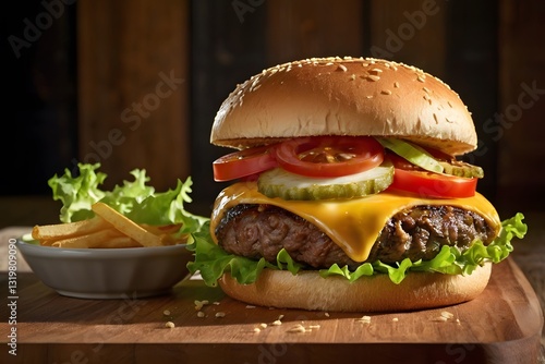 menu fast food hamburger Grilled Beef double cheese burger tasty delicious on table at restaurant