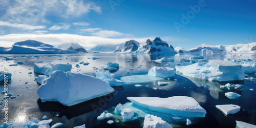 Mer calme dans l'Arctique ou Antarctique avec une multitude d'iceberg