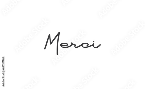 Merci. Calligraphy text. Hand drawn phrase. Handwritten modern lettering. Thank you in French.