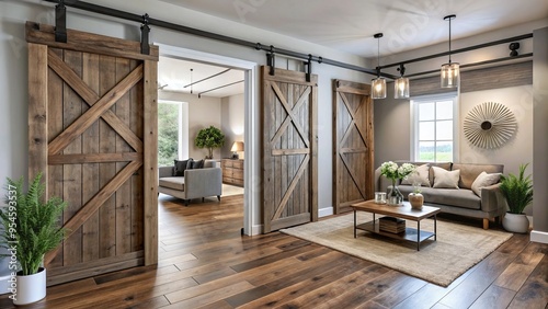 Merging rustic and modern elements, stylish interior sliding barn doors bring a touch of country elegance to the