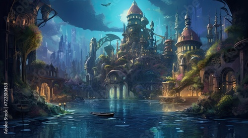 Mermaids intertwines with the charm of seahorses, creating a captivating and magical undersea society. Submerged metropolis, mystical merfolk, marine charm. Generated by AI.