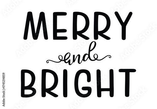 Merry and Bright Christmas lettering clipart, Winter vector lettering, Isolated Christmas vector sign