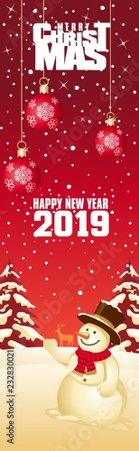 Merry christmas 2019. Snowman in hat.