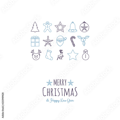 Merry Christmas and Happy New Year - greeting card with hand drawn ornaments. Vector.