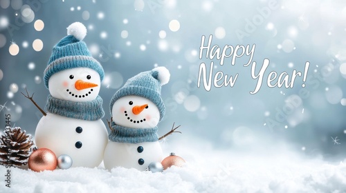 Merry Christmas and Happy New Year greeting card design with snowman.