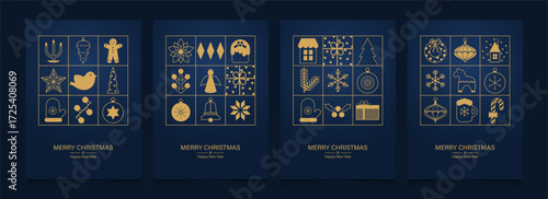 Merry Christmas and Happy New Year set of greeting cards, posters, holiday backgrounds.