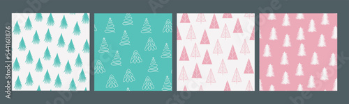 Merry Christmas and Happy New Year set of seamless pattern with various christmas tree. Modern hand draw illustrations. Colorful contemporary art
