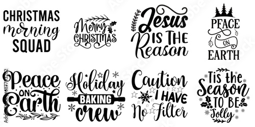 Merry Christmas and Holiday Celebration Labels And Badges Collection Christmas Black Vector Illustration for Gift Card, Bookmark, Decal