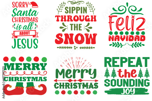 Merry Christmas and Holiday Celebration Trendy Retro Style Illustration Bundle Christmas Vector Illustration for Book Cover, Decal, Motion Graphics