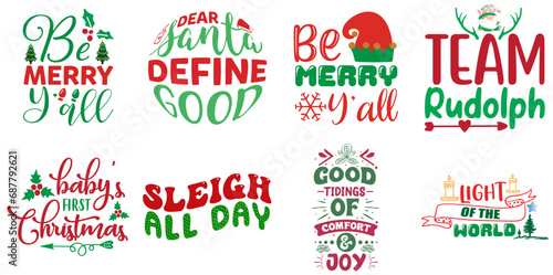 Merry Christmas and Holiday Celebration Typographic Emblems Bundle Christmas Vector Illustration for Flyer, Motion Graphics, Poster