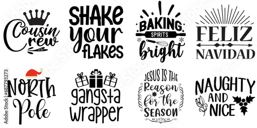 Merry Christmas and Holiday Celebration Typography Bundle Christmas Black Vector Illustration for T-Shirt Design, Printable, Announcement