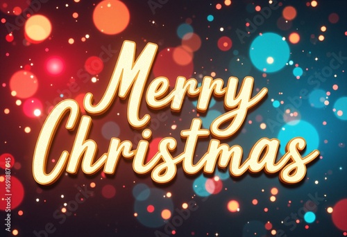 Merry Christmas calligraphic lettering on colorful bokeh glitter festive sparkles background