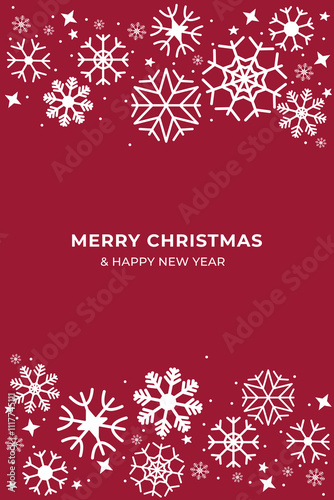 Merry Christmas Card and Happy New Year greeting card with white color Snowflake on red color background