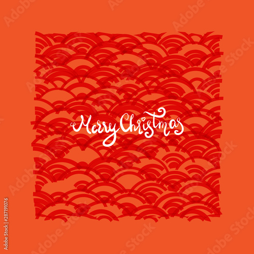 Merry Christmas card design pattern scales simple Nature abstract texture with japanese wave circle orange red background. Vector