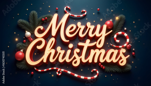 "Merry Christmas" congratulation text, xmas celebration concept