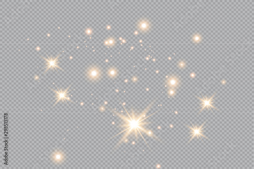 Merry Christmas. golden fire on a transparent background, golden dusty stars. vector illustrator