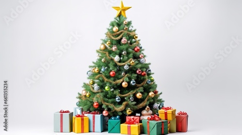 Merry Christmas, Green christmas tree and gift, Generative ai.