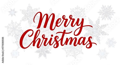 Merry christmas greeting in red cursive font isolated on white background