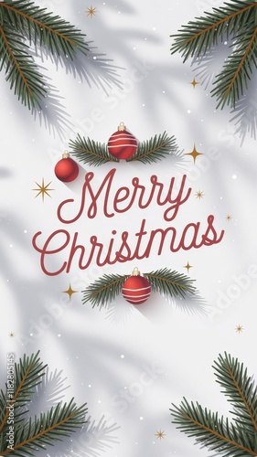 Merry Christmas greeting with festive decorations and pine branches