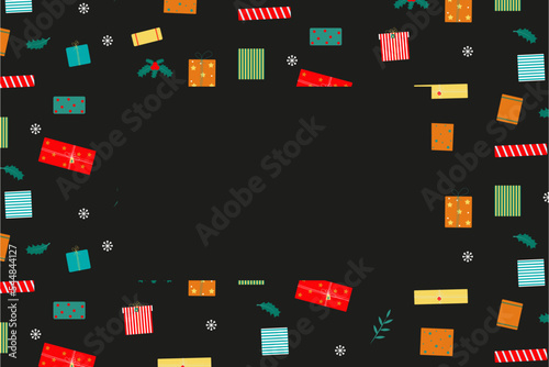 Merry Christmas. Happy birthday. Happy New Year. Invitation template on black backdrop. Abstract geometric decorative background. Vector illustration set. Abstract texture. Modern background design.