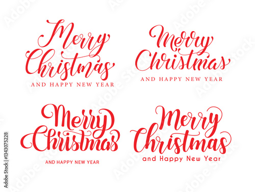 Merry Christmas typography vector set. Merry Christmas calligraphy text isolated with typographic elegant style and design for xmas calligraphic collection. Vector illustration.