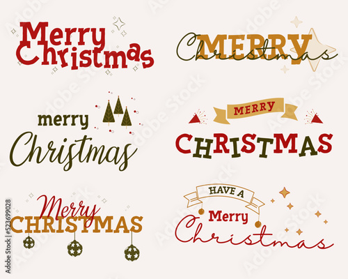 Merry Christmas. Vector logo, emblems, text design and Merry Christmas typography set.