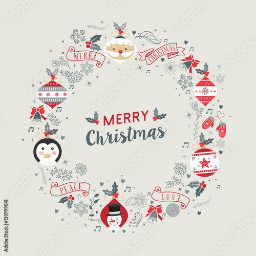 Merry Christmas vintage wreath frame decoration