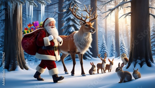 Merry Christmas wallpaper design 2d and 3d illustration template. Merry Christmas image with snowmen and Santa Claus.