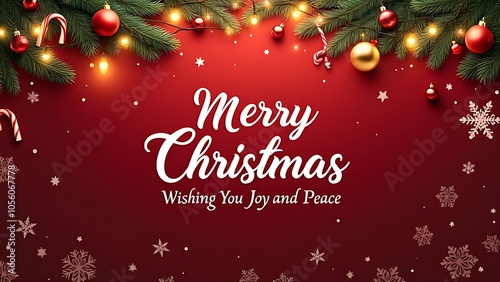 Merry Christmas Wishes Banner Template Design,Festive Holiday Greetings and New Year Celebration Background,Joyful Christmas Card with Lights and Ornaments landscape